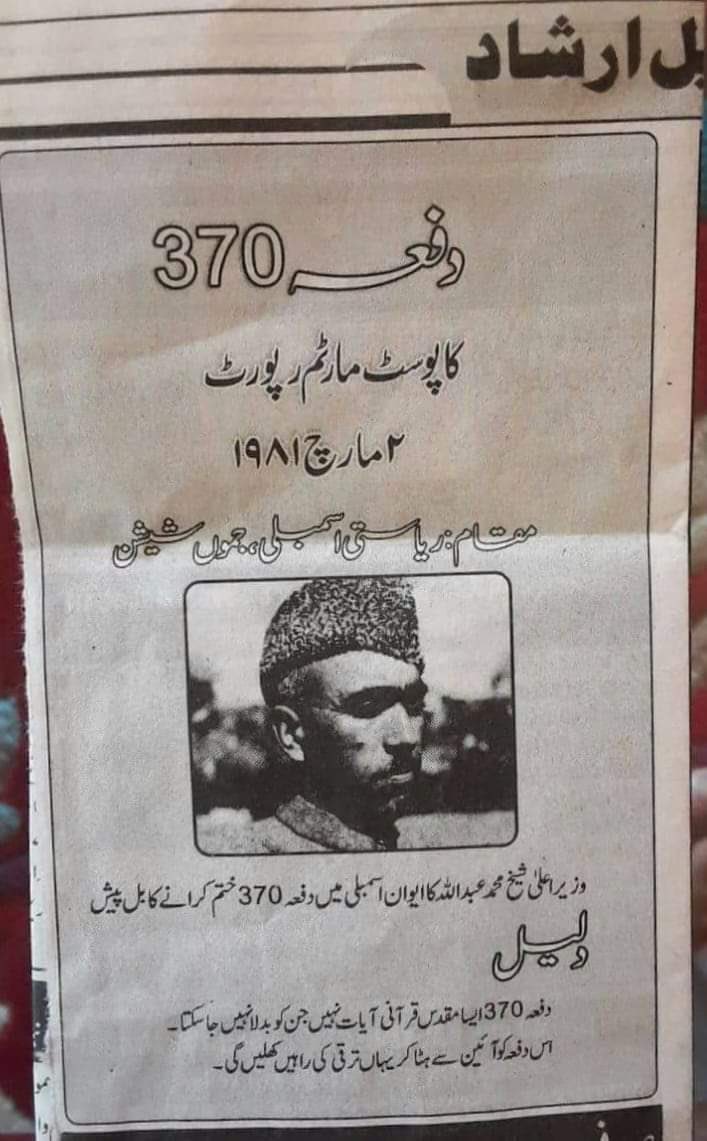 Sheikh Mohammed Abdullah’s thoughts on Article 370: